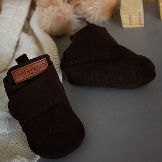 En smuk kombination af godt håndværk og flotte detaljer, samlet i et og samme produkt. Ikke flere tabte futter! Med futterne fra Petit La Busch er du sikret at begge futter altid kommer med hjem igen. Børn har brug for at kunne sanse og mærke deres omgivelser og det giver vores futter dem lov til. Det tynde 2-3 mm lag ruskind og futternes design, uden nogen stiv og tyk gummisål, giver mulighed for at langt flere sanser opfanges op gennem fødderne på barnet.