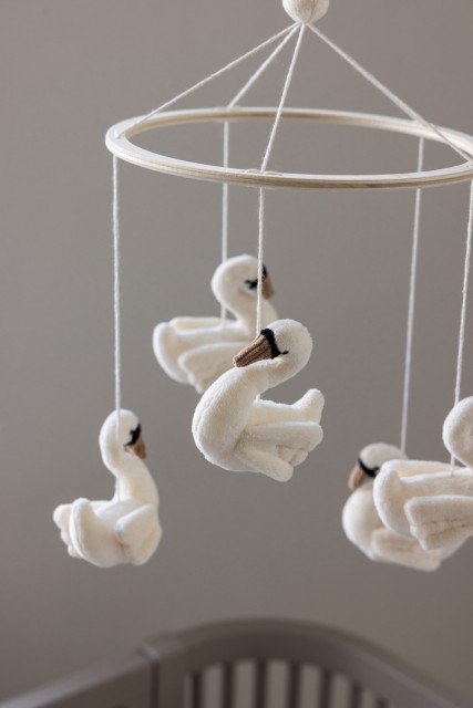 The baby mobile can be hung directly from a ceiling hook or attached to a mobile holder or canopy with a metal frame – easy to place wherever comfort and tranquillity are needed in everyday life.
